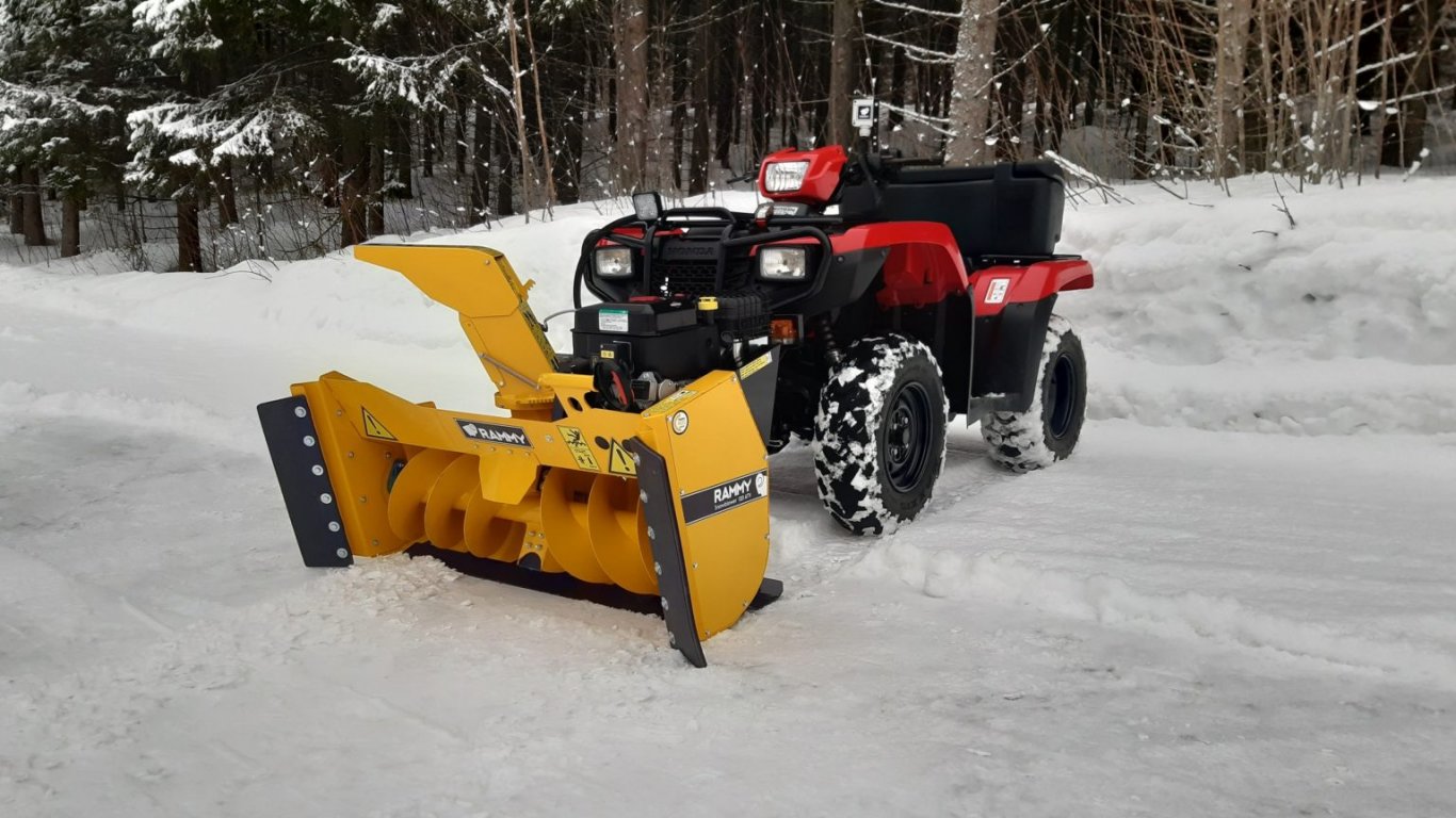 With the adjustable frame, this snowblower is suitable for almost all 4x4 ATV-s. If the CENTER MOUNTING KIT is on the bottom of your ATV, Rammy can be used with existing fasteners. If you need these (not included in the standard delivery), we have CENTER MOUNTING KITS.