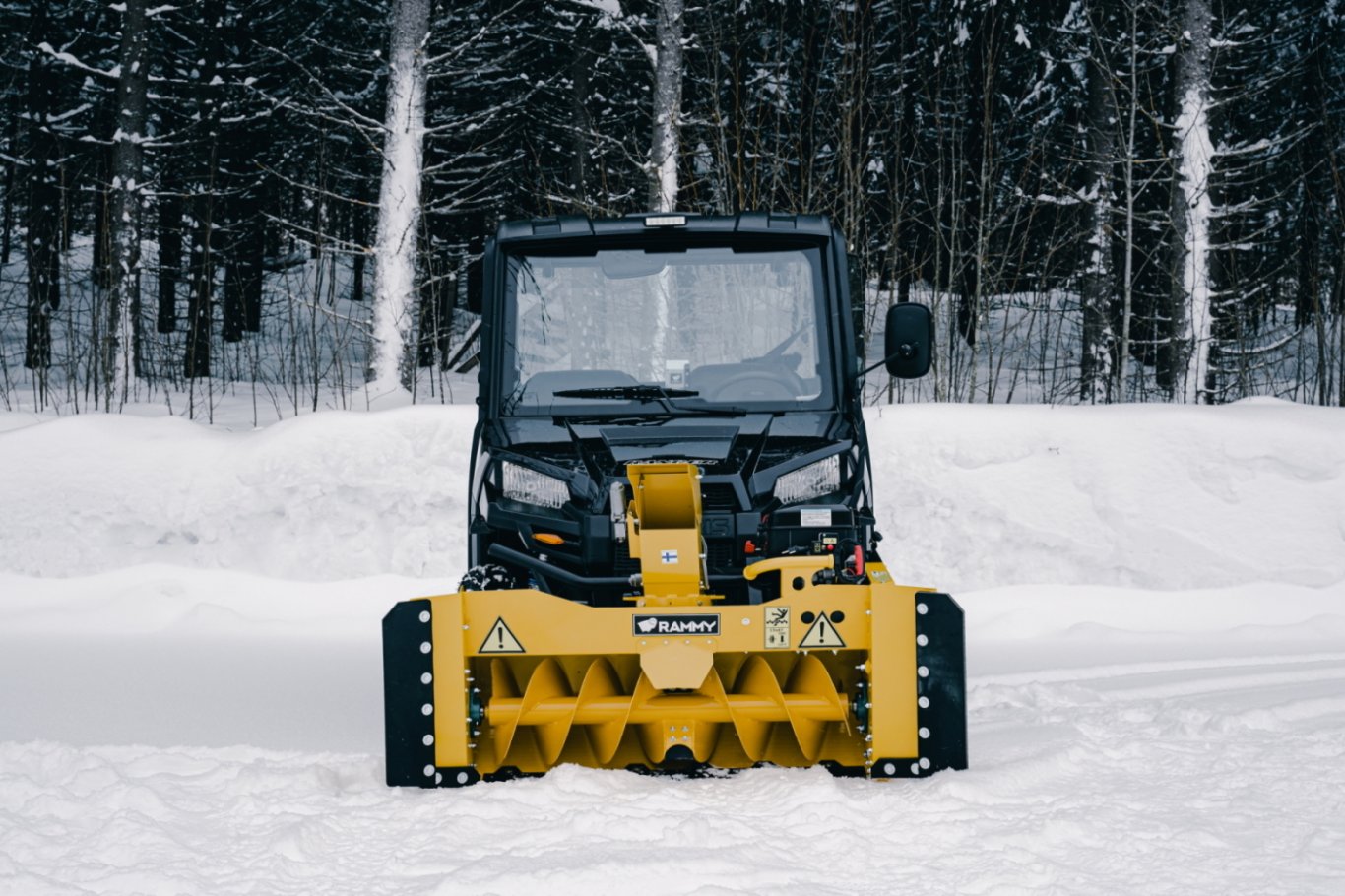 Rammy Snowblower 155 UTV is a 155 cm wide snowblower with a 306 cm3 engine. The snowblower is suitable for both small yards and on long paths. Rammy snowblower is compact, so the agility and off-road capability of your ATV or UTV will remain good. Works also in wet snow.