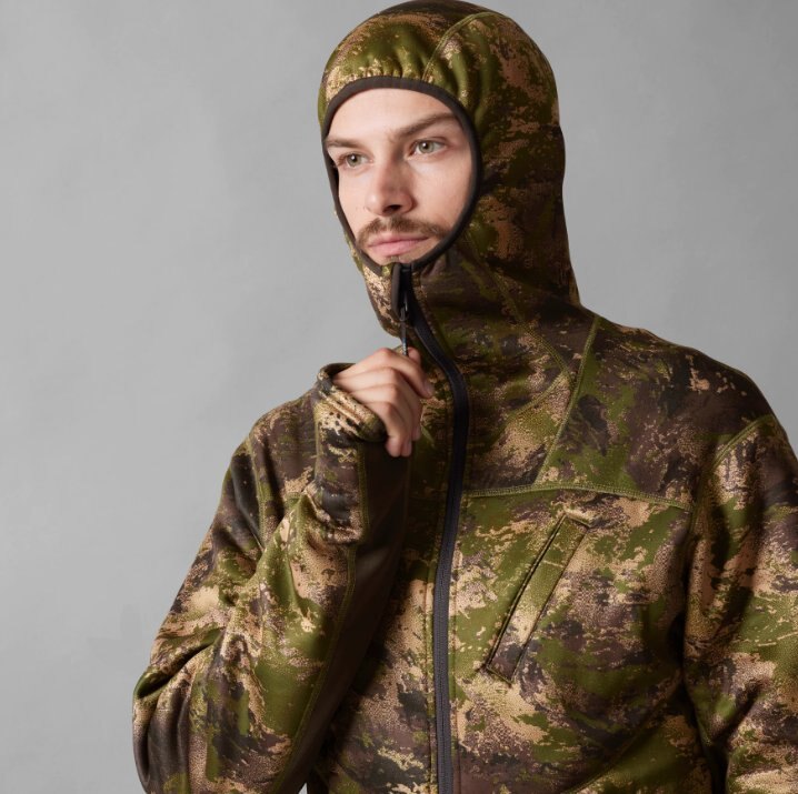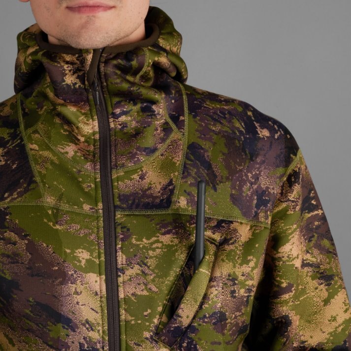 The Deer Stalker camo fleece hoodie is made from an extremely low-noise, soft, quick-drying, ArcStretch fabric, and the garment has a close fit that follows your movements when stalking. It also incorporates various useful features that you will appreciate as a hunter: chest pocket for your range finder, buck call or radio, ventilation zips under the arms, thumbholes at the cuffs for cold mornings and evenings, and large zipped pockets. The Deer Stalker camo fleece hoodie is treated with Tanatex®, so you can focus on the hunt, without worrying about flies, mosquitoes and other insects that can seriously detract from the pleasures of stalking. The Tanatex® treatment can withstand up to 100 washes without losing its effectiveness, so freshening up your hoodie after the hunt is not a problem. The hoodie features AXIS MSP camouflage, which disrupts the hunter’s outline and makes the wearer merge into the background. MSP stands for Multi Season Pattern, and, as the name suggests, this camouflage was designed to be effective in a variety of terrains at different times of the year. This means that the hoodie is suitable for both the buck season and the autumn hunts.